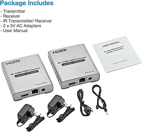 Tobo - وصلة تمديد HDMI 4K بطول 120 متر عبر كابل شبكة ايثرنت كات 5e كات 6 ار جيه 45 تي اكس ار اكس متوافقة مع بلاي ستيشن 4 ومشغل أقراص DVD وتي في بوكس والكمبيوتر إلى التلفزيون من توبو، TD-437H