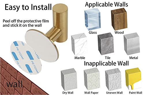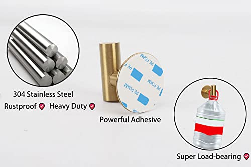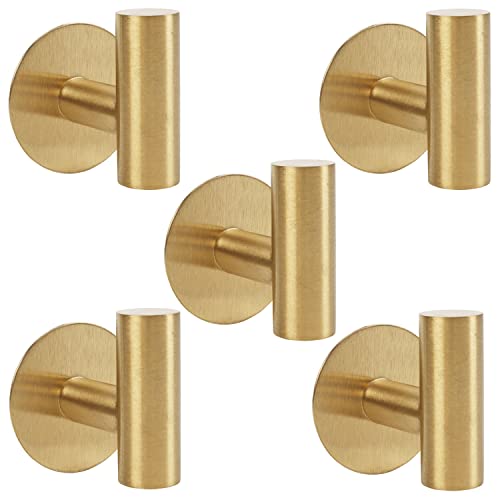 TocTen - توك تين خطاف منشفة الحمام روب قوي ذاتي اللصق ستانلس ستيل اس يو 304 يثبت على الحائط او المعطف الملابس بدون ثقب حائط للحمام والمطبخ والمكتب والخزانة ذهبي مصقول 5 قطع 3.5 رطل 3.5 .