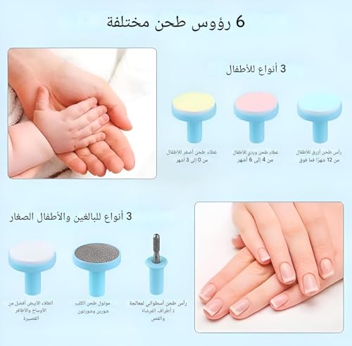 Generic - مجموعة العناية بالأظافر للأطفال الصغار، جهاز متعدد الوظائف للعناية بالأظافر 6 وسادات قابلة للاستبدال بتشغيل هادئ للغاية مصممة لتشكيل أظافر الطفل الرضيع وتلميعها بأمان بدون ألم تماما، متعددة الألوان