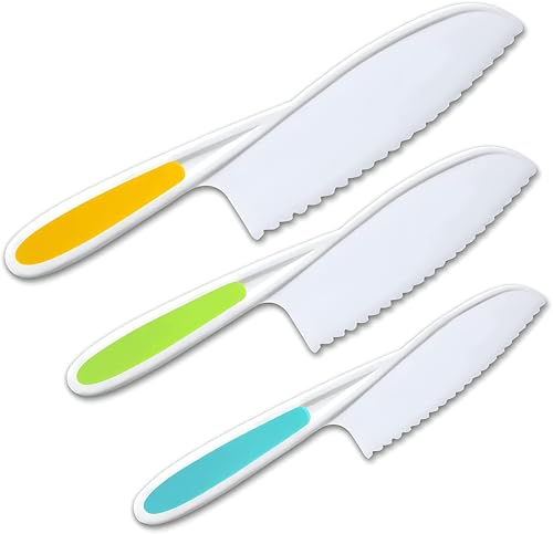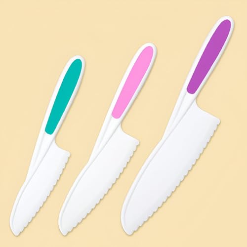 Generic - مجموعة سكاكين للاطفال الصغار - 3 سكاكين امان ملونة مصممة للاطفال لتقطيع الفواكه والسلطة والخضروات والكيك بسهولة وأمان