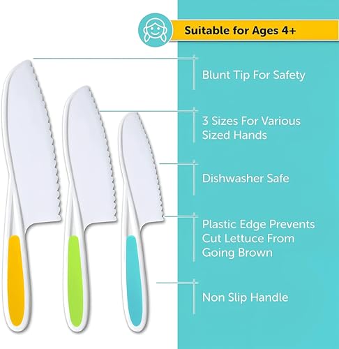 - ✅【آمنة وصحية تمامًا】مجموعة سكاكين السلامة للأطفال الخاصة بنا مصنوعة من درجة إدارة الغذاء والدواء الأمريكية بنسبة 100% وخالية من BPA، مما يسمح لطعام أطفالك بالبقاء آمنًا وصحيًا! بناءً على اختباراتنا الصارمة لتلبية أعلى معايير السلامة لاستخدام الأطفال.