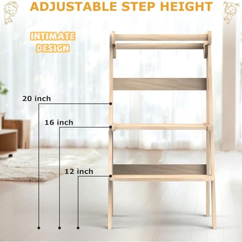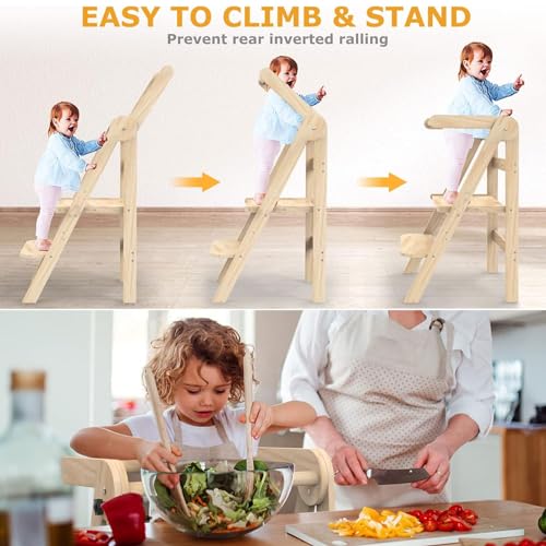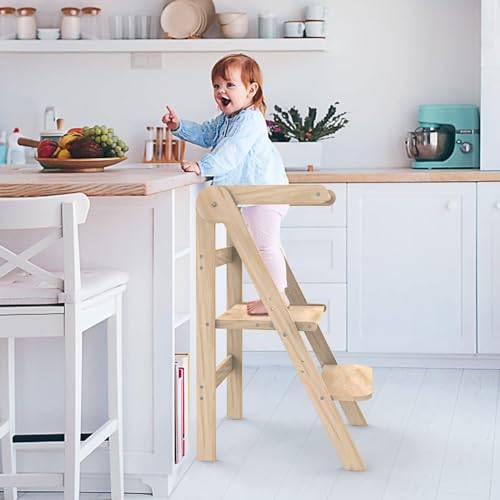 Vocpy - كرسي خشبي صغير للمطبخ للأطفال مع درجة صعود إضافية، برج مونتيسوري للأطفال الصغار، كرسي مطبخ مساعد قائم