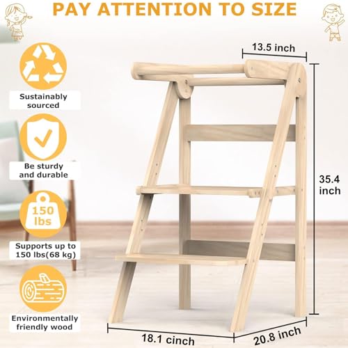 - ✔ تم تصميم المنتج للتجميع الذاتي. برج الأطفال القابل للطي خفيف وسهل الحمل. مناسب للأطفال من سن 18 شهرًا يحتوي برج الأطفال على مستويين، حتى يتمكن الطفل من استخدام برج الأطفال بسهولة. جميع العناصر سهلة التنظيف. هذا المنتج قابل للطي.
