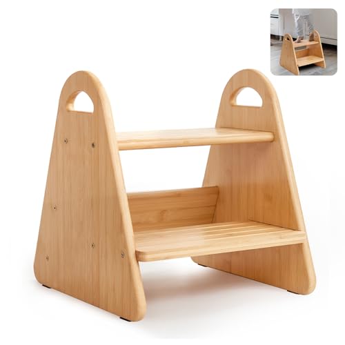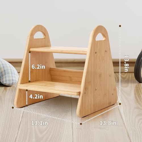 Oiehur - مقعد بدرج للاطفال الصغار، مقعد نونية للاطفال من الخيزران بدرجتين مع مقابض، وسادات اضافية مضادة للانزلاق للسلامة، الحمام والمطبخ، وغرفة النوم