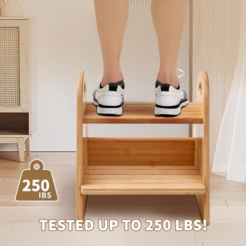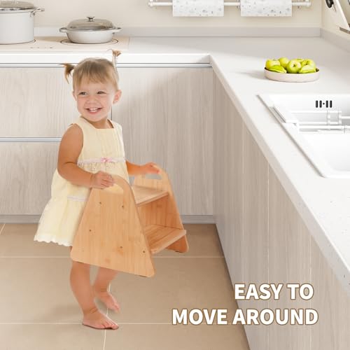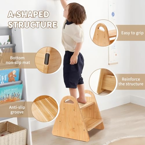 - 【تعزيز السلامة والاستقرار】يتميز بهيكل على شكل حرف "A" ووسادة مطاطية مقاومة للانزلاق، يضمن المقعد المتدرج الخاص بنا الثبات ويمنع الاهتزاز على أي سطح أرضية. اخترنا الخيزران الطبيعي الممتاز لجعل مقعد الأطفال أكثر متانة، مقارنة بالخشب الآخر، في حين أن معالجة تلميع الخيزران، بسمك الخيزران 0.6 انش، من أجل سلامة الأطفال لتوفير الأمان