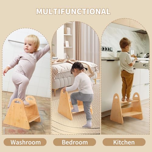 - 【متعدد الاستخدامات ومستدام】يعمل المقعد المتدرج كمساعد للاستحمام وخطوة مطبخ وخطوة سرير، مما يمكّن الأطفال الصغار من التعامل مع المهام بشكل مستقل.