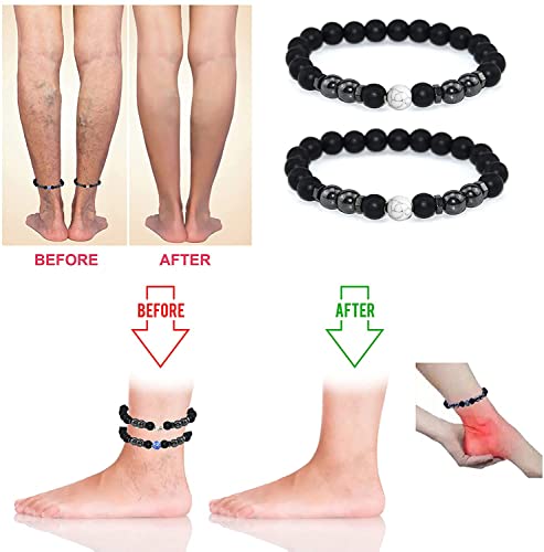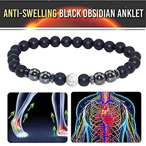 Todenb - خلخال زجاج بركاني اسود مضاد للتورم سوار من الزجاج البركاني الاسود للتصريف اللمفاوي مغناطيسي للقلق للنساء والرجال بدون احجار كريمة 4 قطع