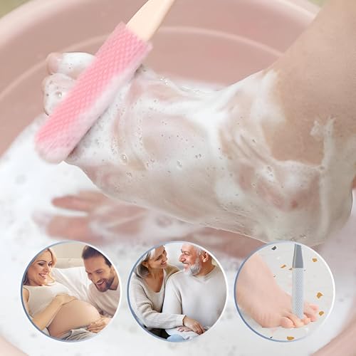 - فرشاة تنظيف القدم والأصابع بمقبض طويل بطول 40 سم، مما يسهل على الأفراد، خاصة كبار السن أو الذين يعانون من ضعف الحركة، التنظيف بين أقدامهم دون انحناء أو إجهاد. يسمح هذا التصميم بعناية شاملة بالقدم براحة وسهولة في الاستخدام.