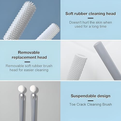 Generic - فرشاة فواصل الأصابع، منظف سيليكون بمقبض طويل للتقشير وفرك القدمين للبالغين وكبار السن، تصميم مطاطي ناعم لتنظيف لطيف أثناء الاستحمام، قطعتان