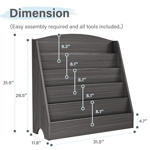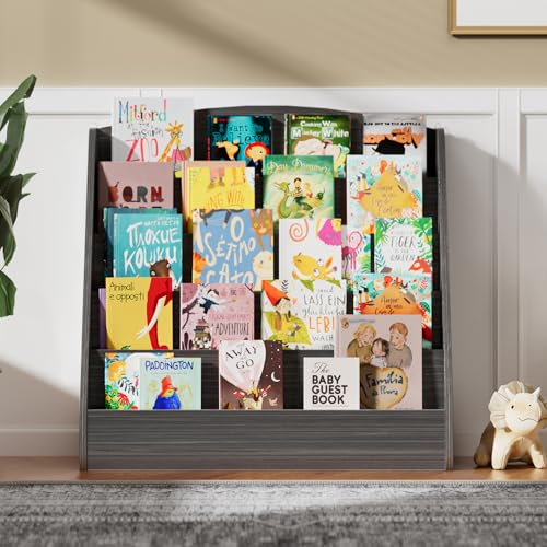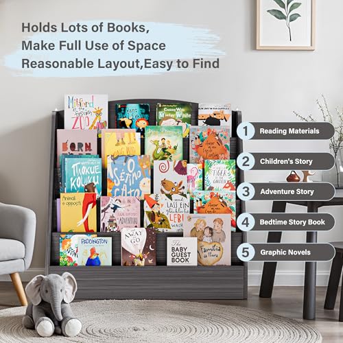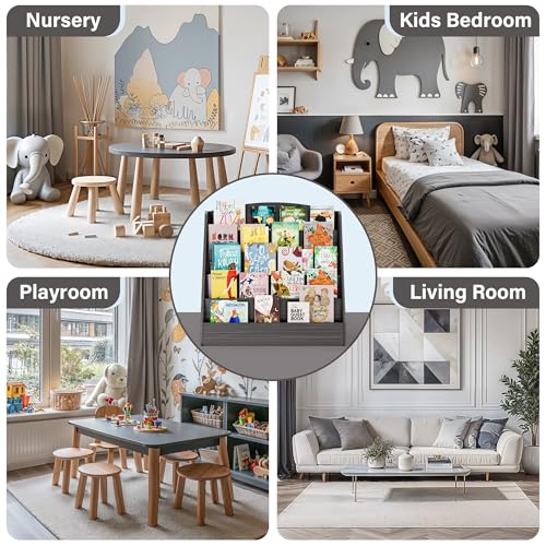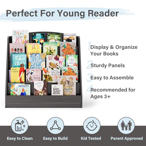 TOETOL - رف كتب للأطفال من 5 طبقات - أرفف عرض كتب للأطفال الصغار للفصول الدراسية وغرف اللعب والحضانة - رف كتب خشبي للأطفال (رمادي مغسول) من توتول