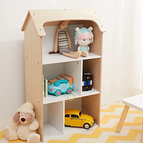 Toffy & Friends - رف كتب لبيت الدمى للاطفال لغرف الاطفال ومنظم العاب خشبي على شكل منزل 21 انش × 10.6 36 مطلي