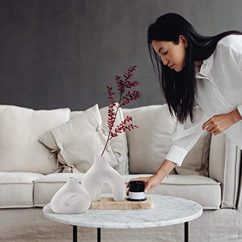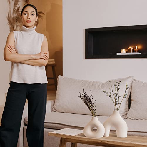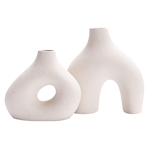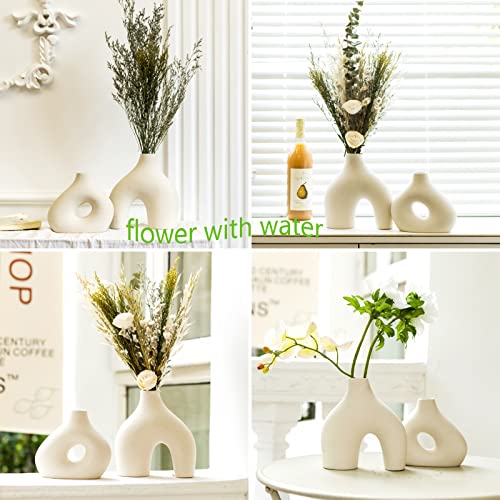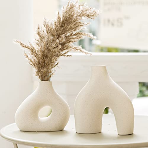 TOHLUCS - طقم فازات دونات من السيراميك الأبيض من توهلوكس، فازات دونات دائرية مطفية لعشب البامباس، مزهريات زهور بنمط بوهيمي نورديك بسيط ومحايد لحفلات الزفاف وطاولة العشاء والحفلات وغرفة المعيشة، هدية ديكور