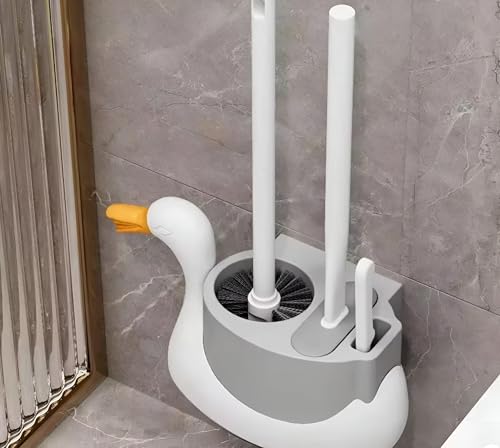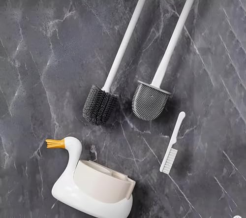 Generic - مجموعة فرش المرحاض - مجموعة من 4 قطع مع صندوق تصريف وفرشاة سلكية خالية من الخدوش وعصا سيليكون رفيعة للبقع الضيقة، وفرشاة بشعيرات ضيقة ومقبض بلاستيكي قوي مضاد للكسر، لون ابيض وبيج