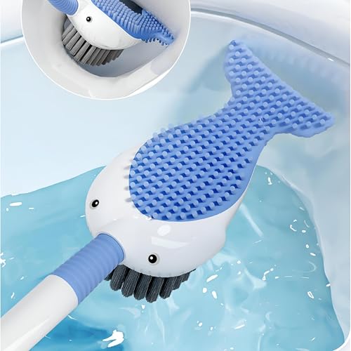 Generic - فرشاة تنظيف تواليت، تثبت على الحائط على شكل حوت بتصميم مريح وقوة شفط قوية، مجهزة بزر سيليكون لتنظف بدون جهد عند الاستخدام التجاري أو المدرسي