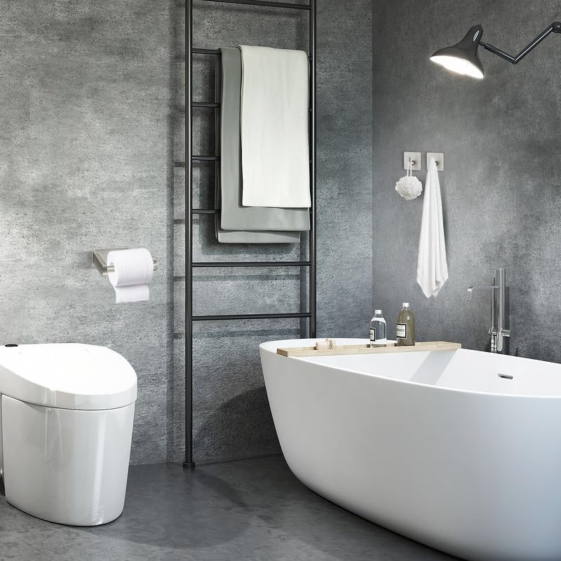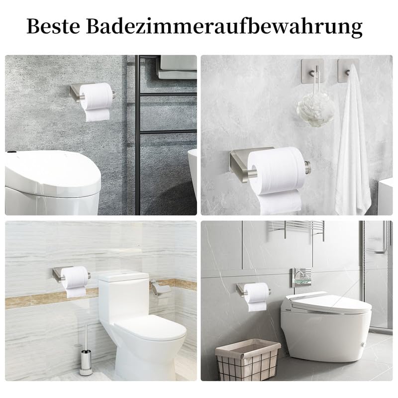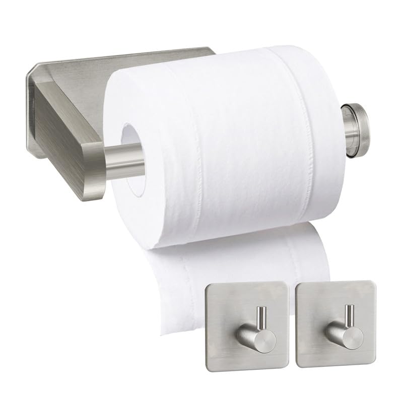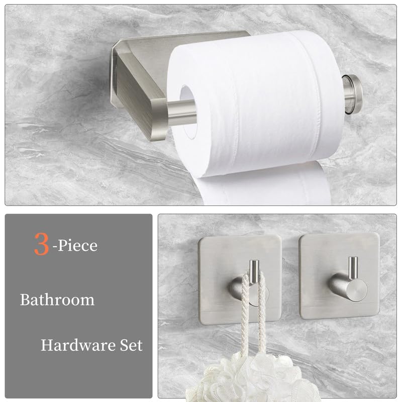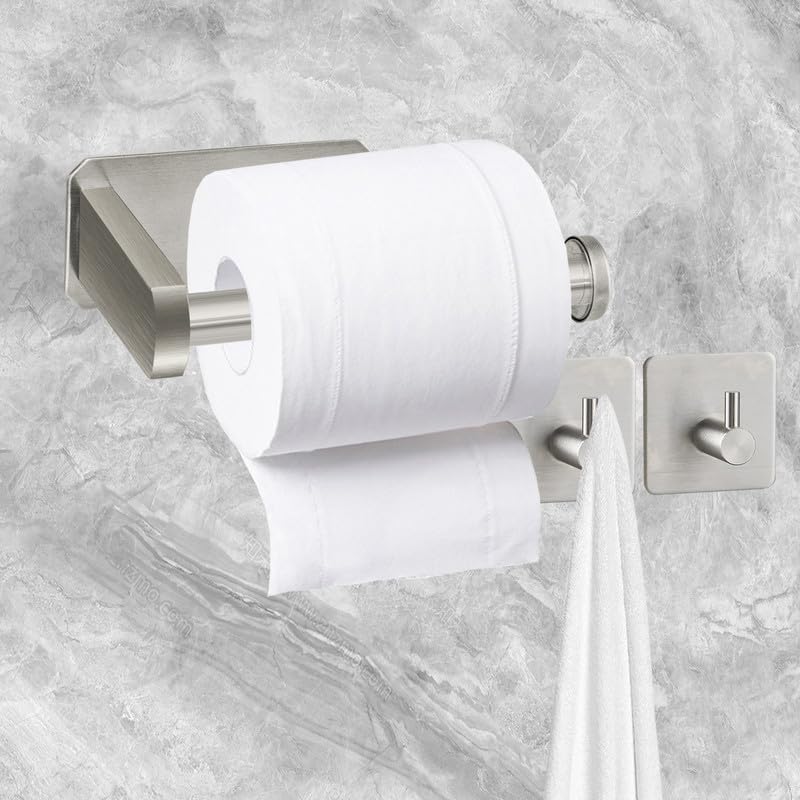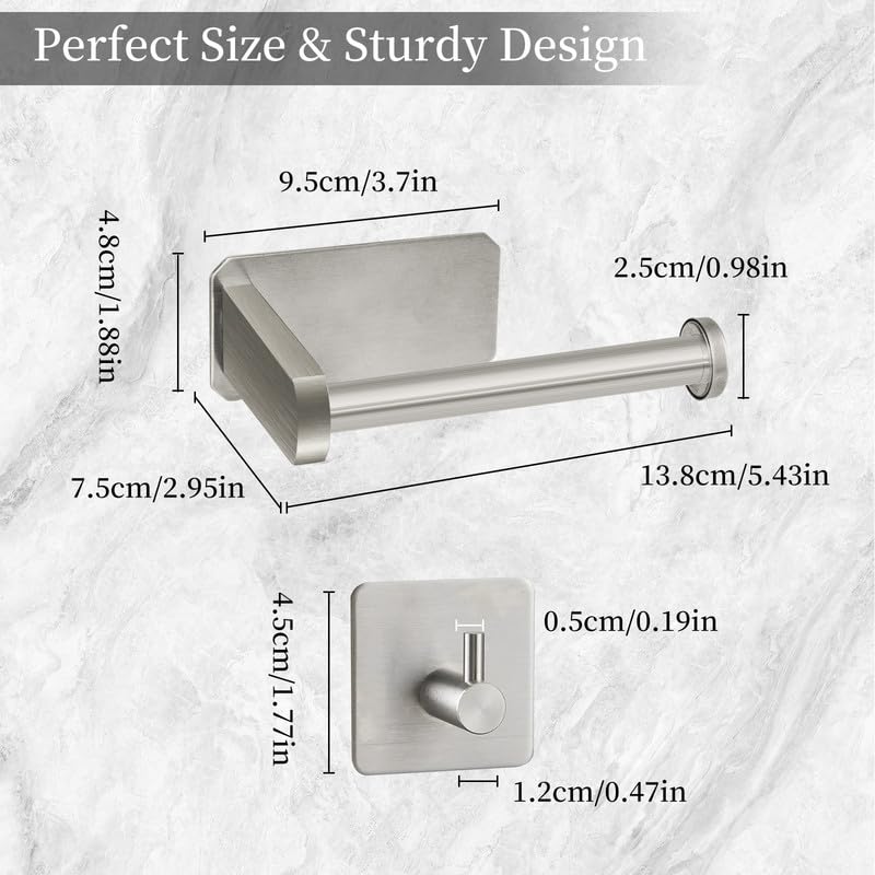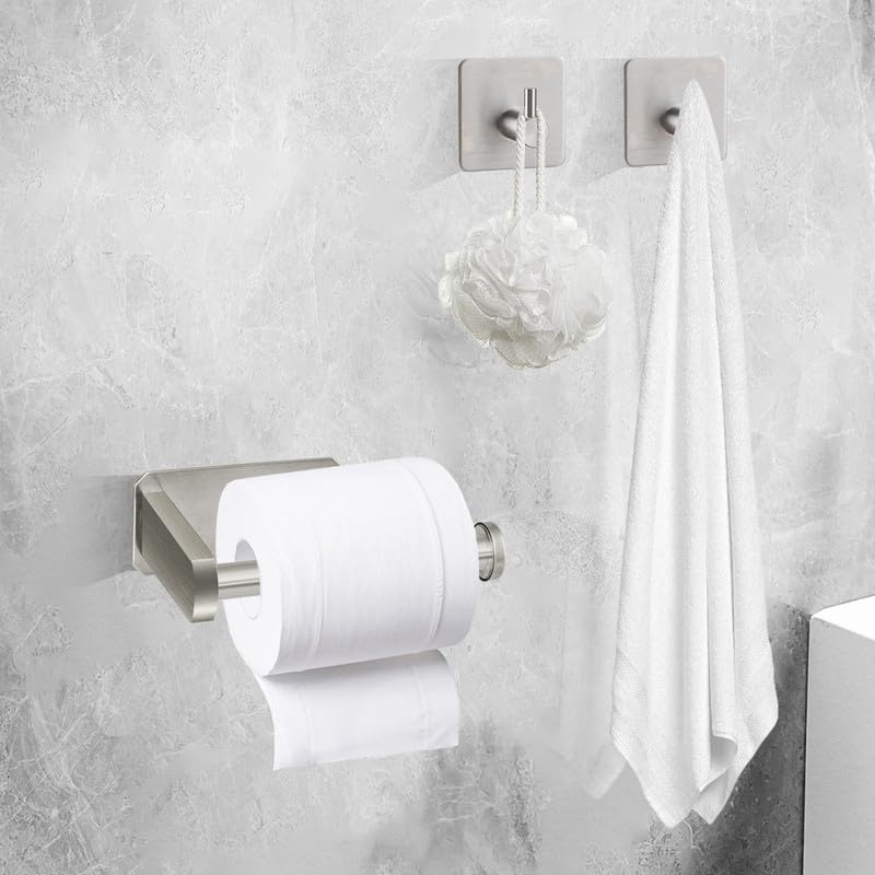- جودة ممتازة - حامل ورق المرحاض مصنوع من الستانلس ستيل SUS304 عالي الجودة، وهو قوي ومتين للغاية. يمكن تثبيت خطافات رداء المنشفة ذاتية اللصق بثبات على سطح أملس. كل خطاف يحمل سعة تصل إلى 11 باوند (5 كغم)، والتي يمكنها حمل المنشفة ورداء الحمام والمعطف والحقيبة والقبعة والمظلة والمفاتيح وما إلى ذلك.