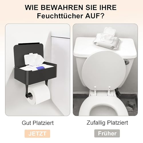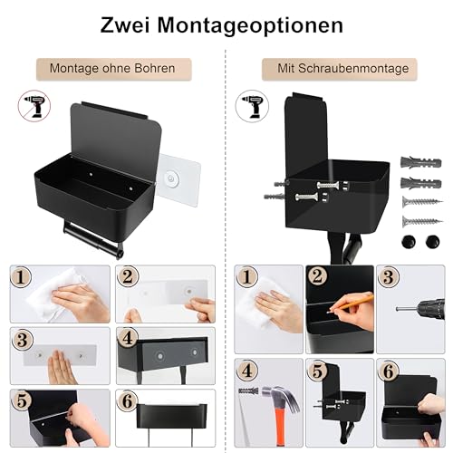 - يأتي حامل بكرة المرحاض مع صندوق للمناديل المبللة بخيارين للتركيب: ذاتي اللصق أو بالتثبيت بالثقب، ومصنوع من الفولاذ المقاوم للصدأ SUS304، ما يمنحه متانة عالية ومقاومة للرطوبة. يتميز حامل بكرة المرحاض الأسود غير اللامع بخيارين للتركيب: ذاتي اللصق أو بالحفر، مع قوة التصاق ممتازة على الأسطح مثل البلاط والرخام والمعدن والزجاج، مما يجعله سهل التركيب حتى للمبتدئين وفي غضون دقائق.