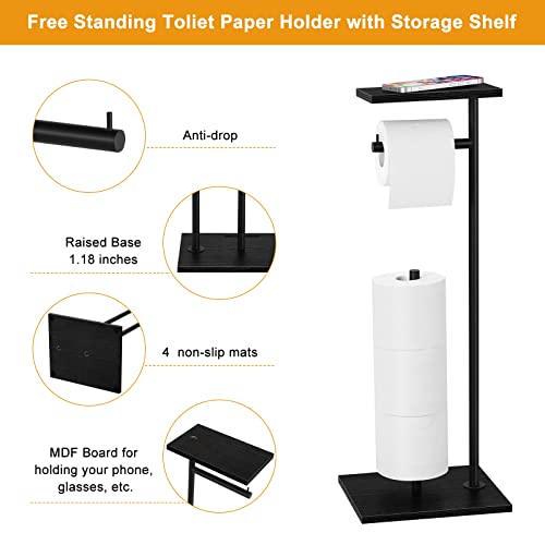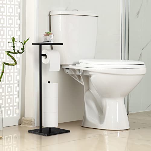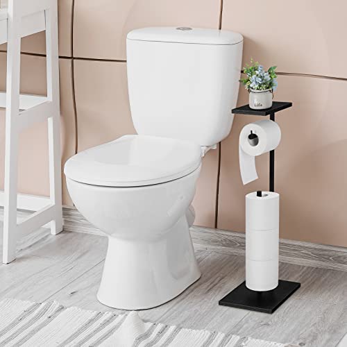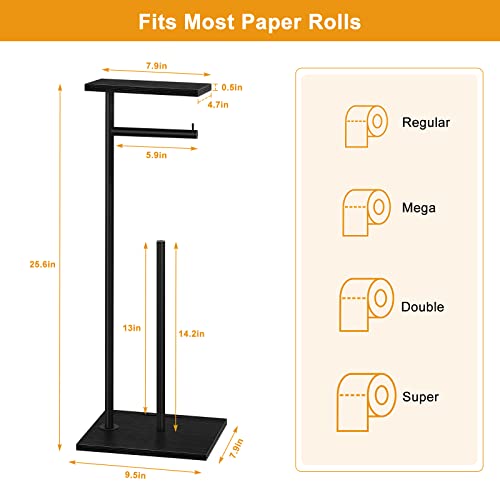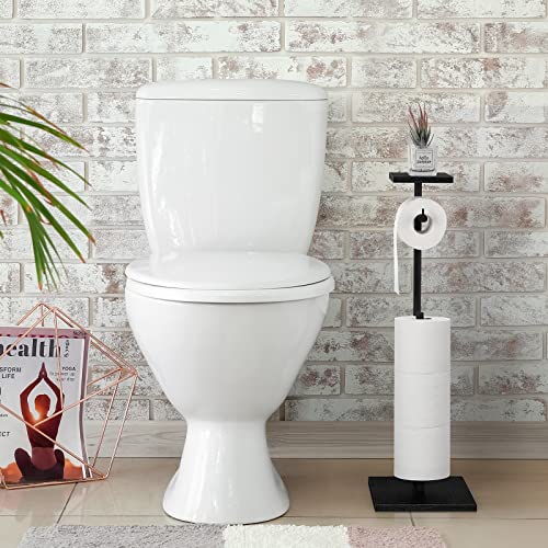 smusei - حامل ورق تواليت أسود، حامل ورق تواليت قائم بذاته للحمام مع رف تخزين، حامل لفات قائم بذاته، موزع مناديل ريفي للاحتياطي من لفات الميجا