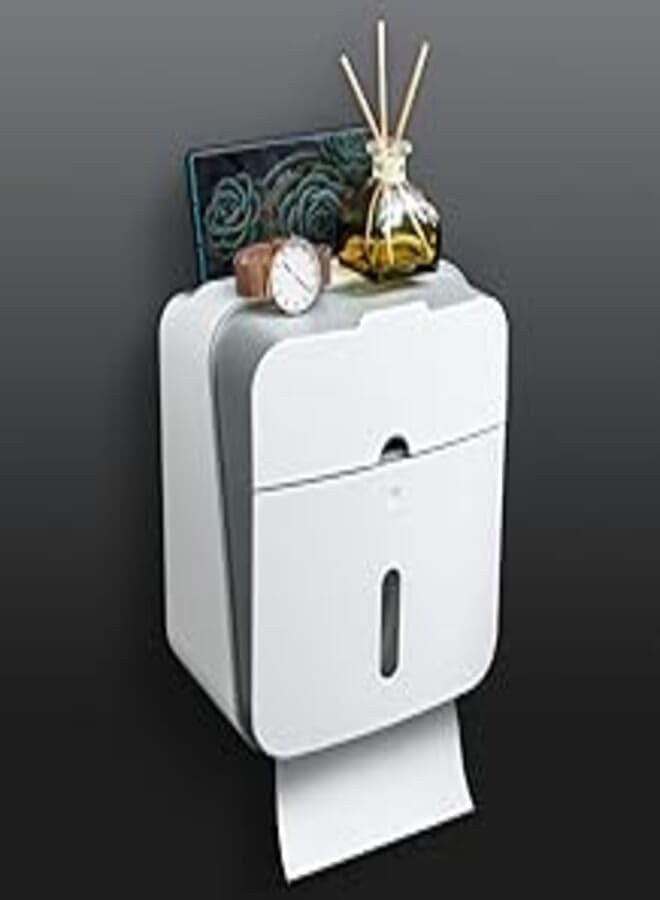 generic - حامل لفافات ورق التواليت، حامل مناديل ورقية منظم يثبت على الحائط، رف صندوق ملحقات الحمام، زهري (رمادي)