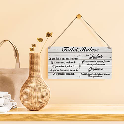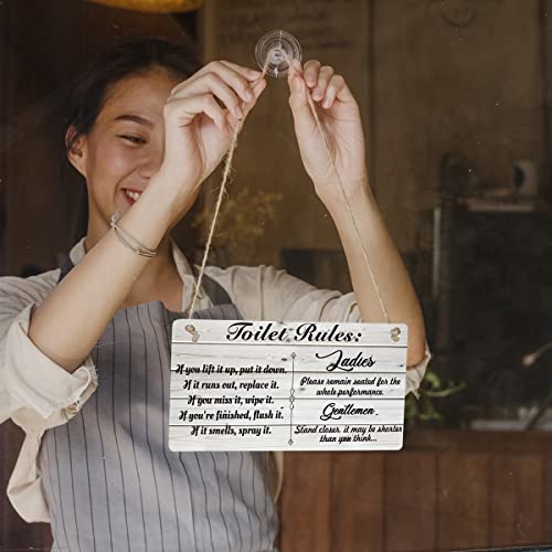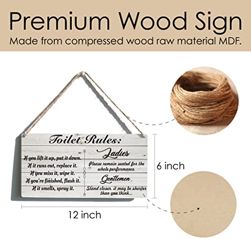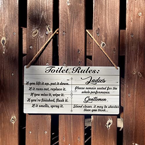 Qious - لافتة قواعد المرحاض من الخشب للتعليق على الحائط بتصميم عتيق لديكور المنزل والمرحاض مقاس 30 × 15 سم
