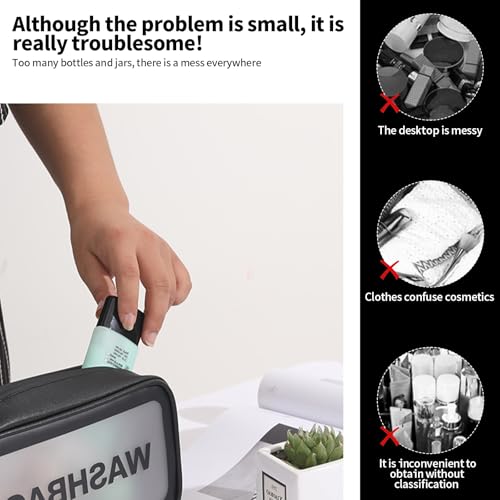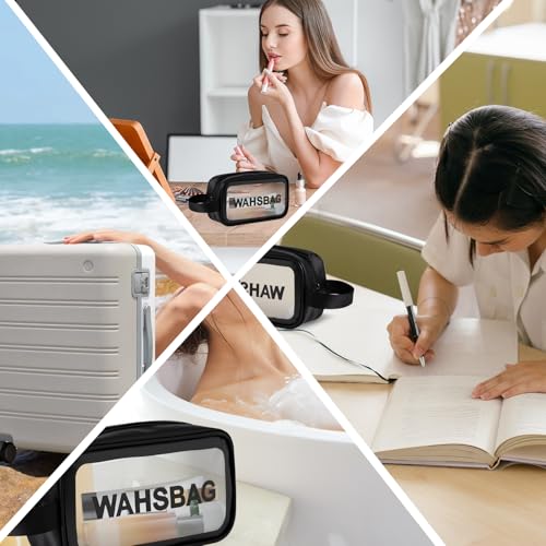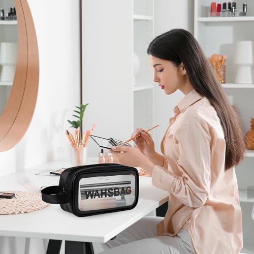 LZYDKH - شنطة ادوات الزينة من قطعتين، شنطة مستحضرات تجميل شفافة للسفر، شنطة مكياج شفافة مقاومة للماء، شنطة غسيل محمولة للسفر والحمام للرجال والنساء (اسود)، شفافة، مقاس واحد، مقاس واحد