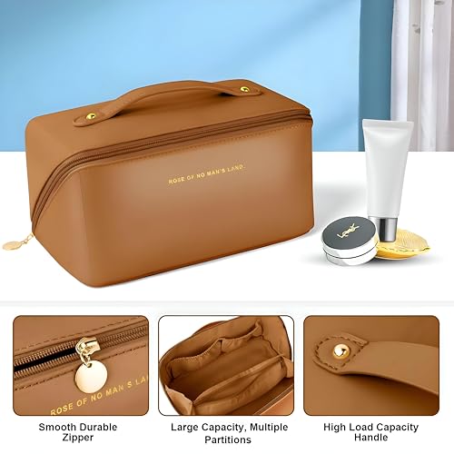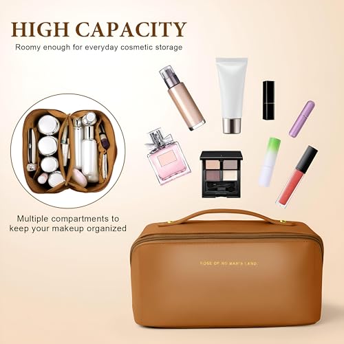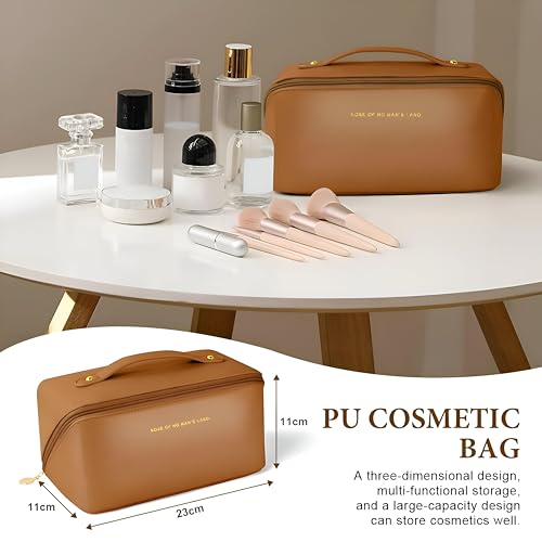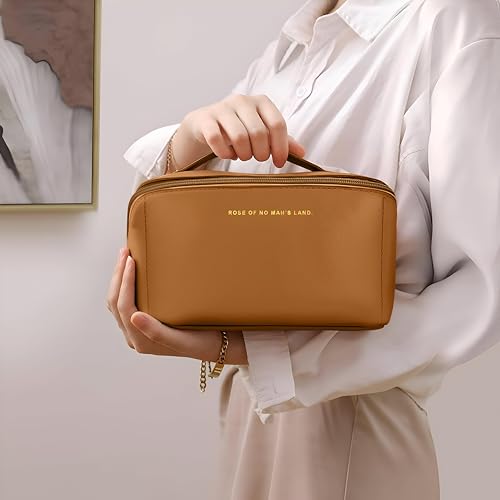 Generic - شنطة تخزين ادوات الزينة - شنطة مكياج انيقة ومتعددة الاستخدامات لتعبئة فعالة للسفر (بني)