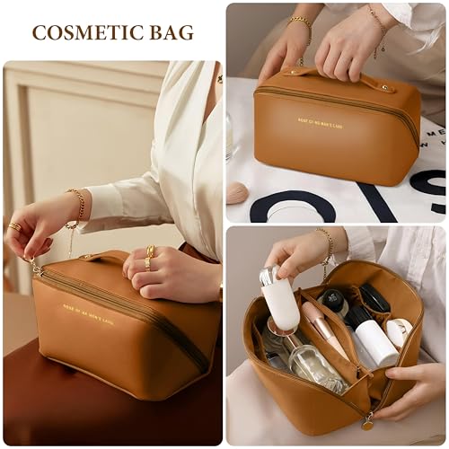 - حقيبة المكياج ذات السعة الكبيرة هذه مصنوعة من جلد البولي يوريثين الفاخر، مما يوفر حلاً أنيقًا ومتينًا لتنظيم مستحضرات التجميل وأدوات النظافة. يضمن الجزء الخارجي المقاوم للماء بقاء متعلقاتك محمية من الانسكابات والرطوبة، بينما يوفر الغلاف شبه المرن المبطن طبقة إضافية من الحماية ضد الضغط الخارجي، مما يحمي الأشياء الحساسة أثناء السفر أو الاستخدام اليومي. هذا المزيج من المواد عالية الجودة والتصميم المدروس يجعله تخزينًا موثوقًا وجذابًا