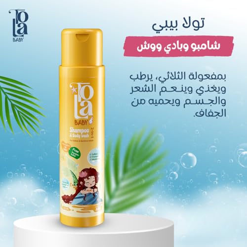 - كيفية استخدام شامبو وغسول الجسم من تولا بيبي: بلل شعر طفلك وجسمه بالماء الدافئ. اسكب كمية صغيرة في يدك. دلك الشعر والجسم بلطف للحصول على رغوة خفيفة. اشطفه جيداً بالماء النظيف. حافظ على بشرة طفلك ناعمة ونظيفة ومحمية مع شامبو وغسول الجسم 2 في 1 من تولا بيبي 250 مل - خيارك الأمثل للعناية اليومية اللطيفة.