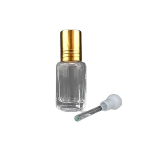 - تصميم أنيق: زجاجة شفافة سعة ١٢ جرام مع غطاء ذهبي فاخر وقطارة للاستخدام