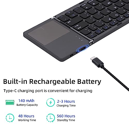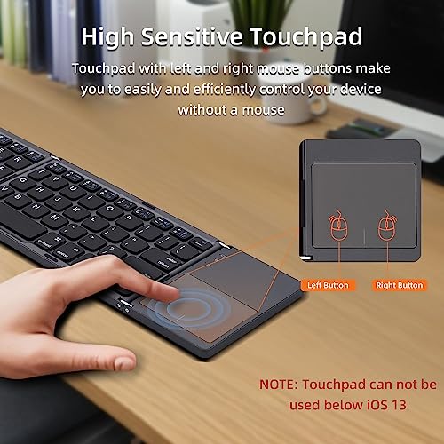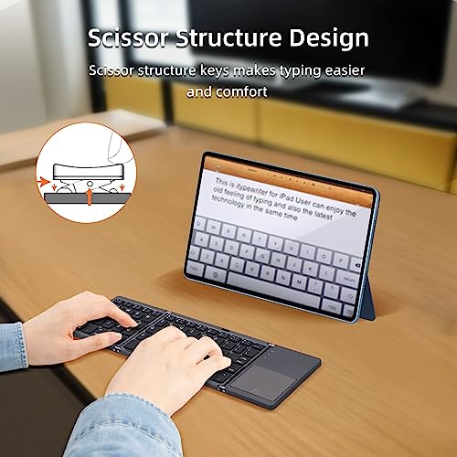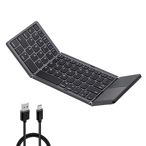 Tolesum - لوحة مفاتيح بلوتوث قابلة للطي مع لوحة تعمل باللمس لاسلكية لأجهزة التابلت والموبايل والكمبيوتر بنظام iOS وأندرويد من توليسوم، رمادي