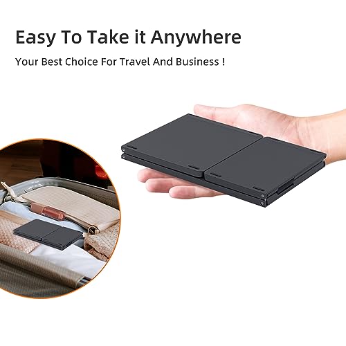 - صغيرة الحجم وقابلة للحمل: يمكن طي لوحة المفاتيح إلى حجم صغير يبلغ حوالي 15 × 9.7 × 1.3 سم، مما يجعلها خفيفة للغاية وسهلة الحمل. مثالية لرحلات العمل والسفر والمعارض، حيث توفر الراحة دون التأثير على الوظائف.