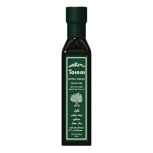 Tolool - زيت الزيتون من تلول، سائل بكر ممتاز في زجاجة داكنة مضادة للأكسدة، معصور على البارد، سعة 250 مل، عبوة واحدة