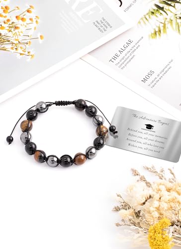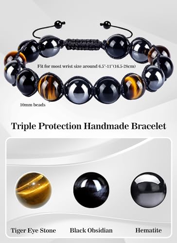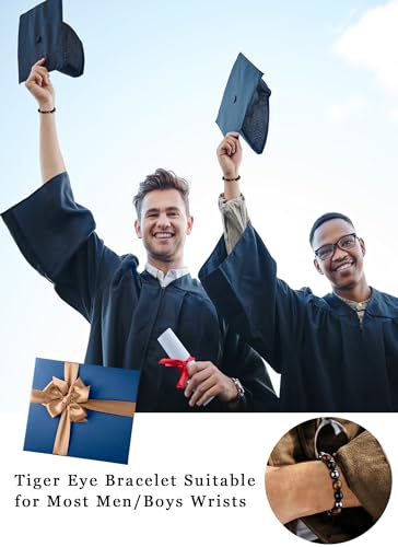 TOLOWOBK - أساور من أحجار عين النمر للرجال من تولووبك، أساور خرز ثلاثية الحماية للرجال، هدية لعيد الأب وحفلات التخرج وأعياد الميلاد للأب والابن والزوج والصديق والاخ والجد