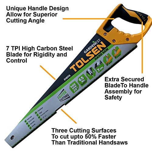 Tolsen - منشار يدوي صغير ومضغوط بمقبض انبوبي بلاستيك جريبرو حائز على براءة اختراع لاعمال النجارة من تولسن، 400 ملم (16 بوصة) 450 ملم (18 بوصة) 550 ملم (22 بوصة)(16 بوصة (400 ملم))