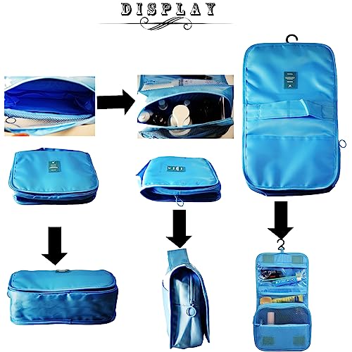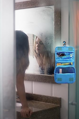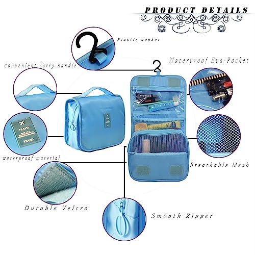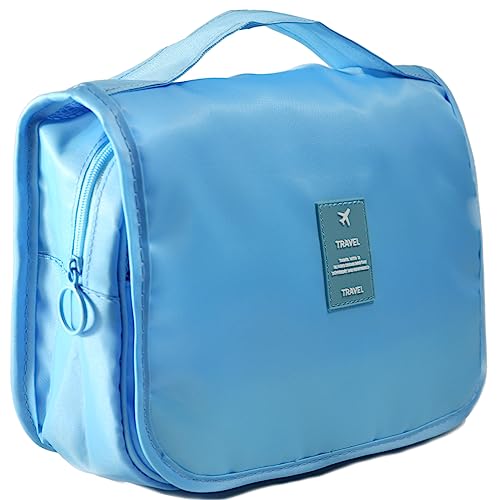 Toltyeria - شنطة ادوات الزينة المعلقة من تولتيريا، شنطة مكياج محمولة للسفر، شنطة منظمة للسفر للنساء والفتيات مع مساحات تخزين متعددة، مقبض، ازرق فاتح، مقاس واحد، عصرية