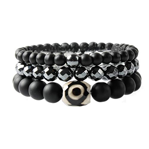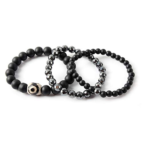 tom+alice - سوار صلاة من حجري اونيكس مطفي للرجال والنساء توم+ اليس مقاس 10 ملم 3 قطع بوصلات حجر بركاني