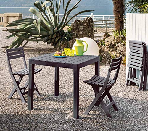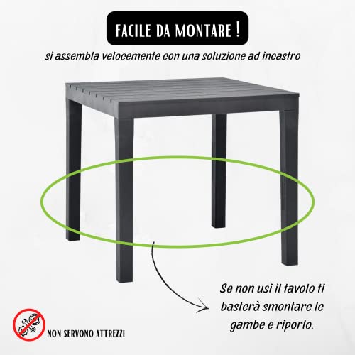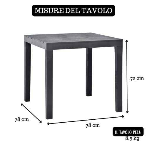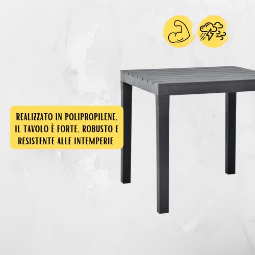 Tomaino - طاولة حديقة بلاستيكية بتأثير خشبي مربعة عصرية ومتينة من توماينو - مقاس 78 سم × 72 ارتفاع