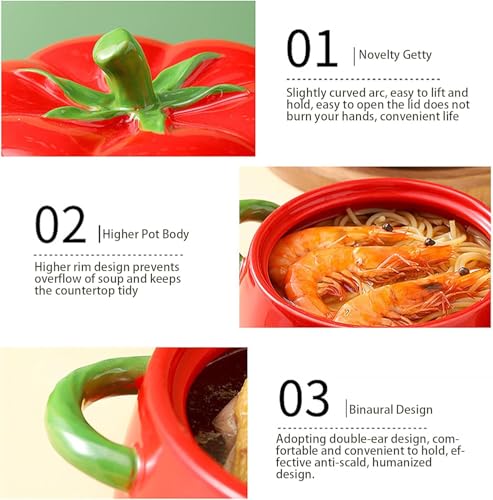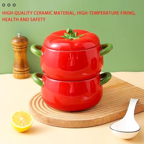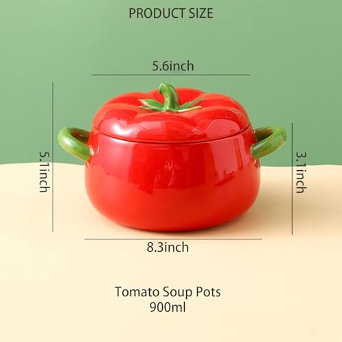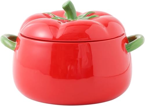 Generic - طاجن بورسلين بتصميم طماطم مع غطاء 900 مل، وعاء مقاوم للحرارة لتقديم الحساء والطعام مناسب للميكروويف والطبخ المصري اليومي جيني