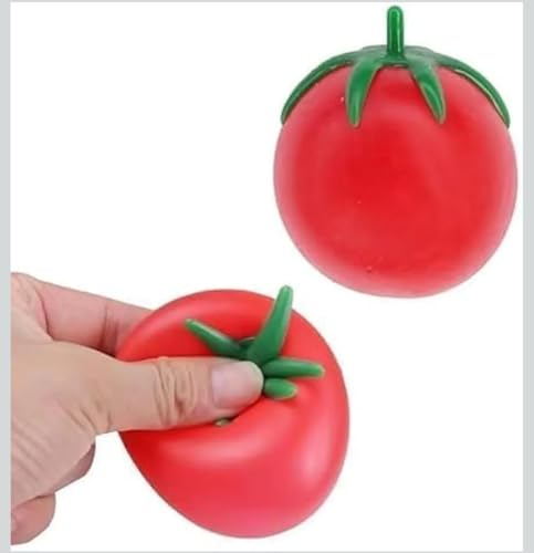 - التصميم: كرة ضغط واقعية على شكل طماطم مع تفاصيل جذع خضراء مزخرفة ولون أحمر نابض بالحياة لمظهر أصلي