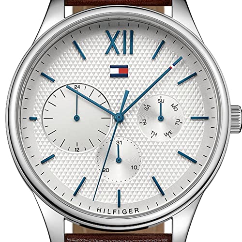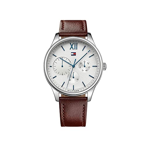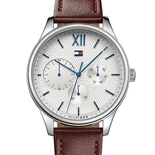 Tommy Hilfiger - ساعة انالوج بعقارب دائرية الشكل مقاومة للماء بسوار جلدي من تومي هيلفيجر للنساء طراز 1791418 - بني
