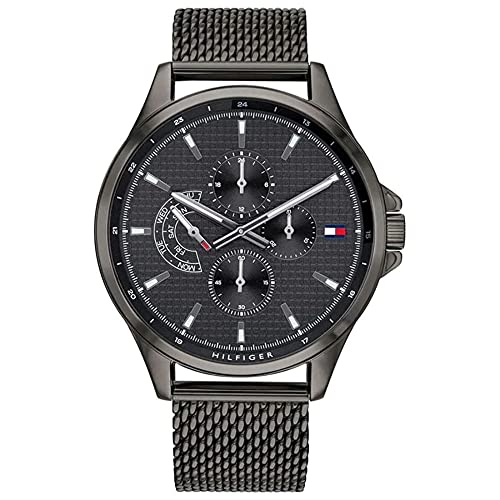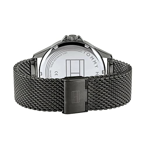 Tommy Hilfiger - ساعة يد للرجال من تومي هيلفيجر دائرية بانالوج بعقارب مقاومة للماء ستانلس ستيل- رمادي غامق 1791613 أسود