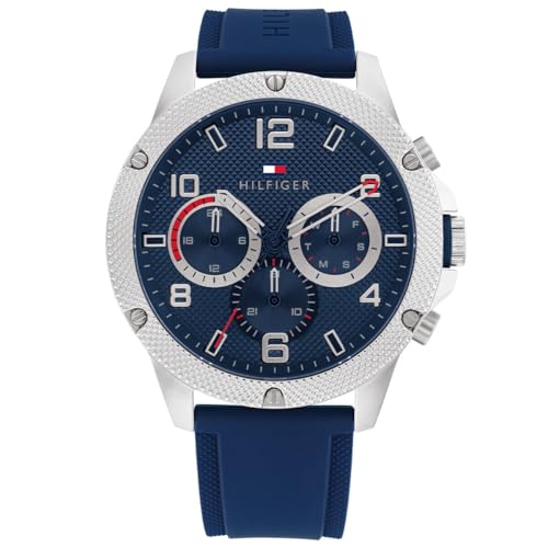 Tommy Hilfiger - تومي ساعة كاجوال بسوار مطاطي للرجال، ازرق، تناظري