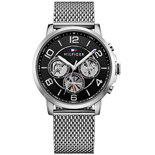 Tommy Hilfiger - ساعة يد كوارتز للرجال من تومي هيلفيجر بمينا متعدد وسوار ستانلس ستيل، فضي / اسود، موديل 1791292, فضي/أسود