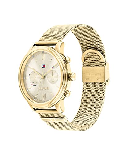 Tommy Hilfiger - تومي هيليفيغر ساعة بمينا ذهبي فاتح وسوار ستانلس ستيل رفيع مطلي ايونيا بالذهب 2 للنساء - 1782302، تناظري