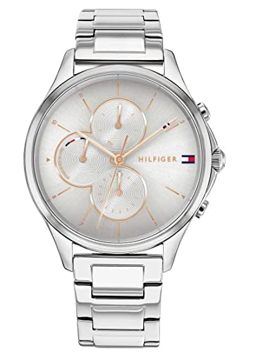Tommy Hilfiger - تومي هيليفيغر ساعة بمينا رمادي وسوار ستانلس ستيل للنساء - 1782263، تناظري