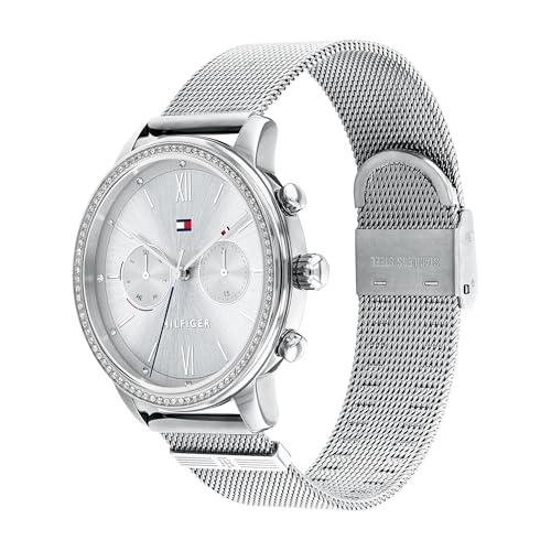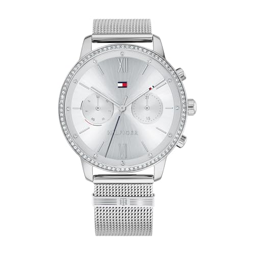 Tommy Hilfiger - تومي هيليفيغر, ساعة بمينا ابيض وسوار ستانلس ستيل للنساء من بليك - 1782301، تناظري