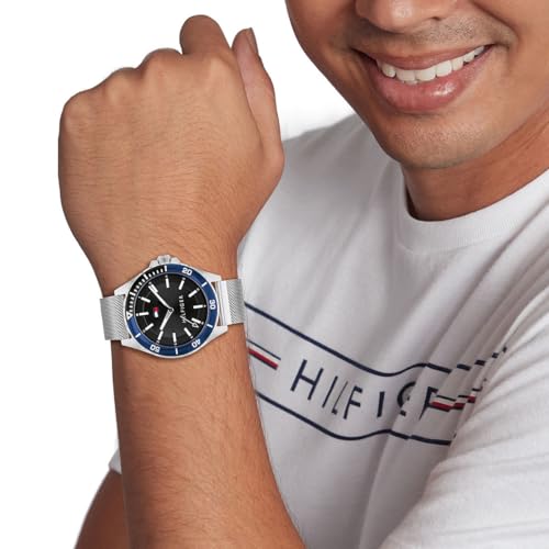 Tommy Hilfiger - تومي ساعة كاجوال بسوار من الستانلس ستيل للرجال، لون اسود، تناظري