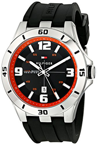 Tommy Hilfiger - ساعة درو انالوج بعقارب وسوار سيليكون للرجال من تومي هيلفيجر، 1791064، بمينا أسود