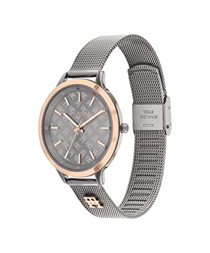 Tommy Hilfiger - تومي هيليفيغر ساعة يد للنساء بمينا رمادي وسوار ستانلس ستيل 1 مطلي ايونيا بلون من ايرس - 1782587 لون عصري تناظري