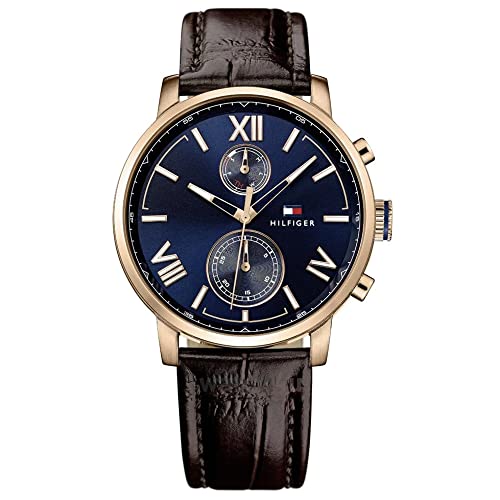 Tommy Hilfiger - ساعة كاجوال كوارتز من الستانلس ستيل بسوار جلد طبيعي للرجال من تومي هيلفيجر، بني 22 (موديل 1791308), اللون