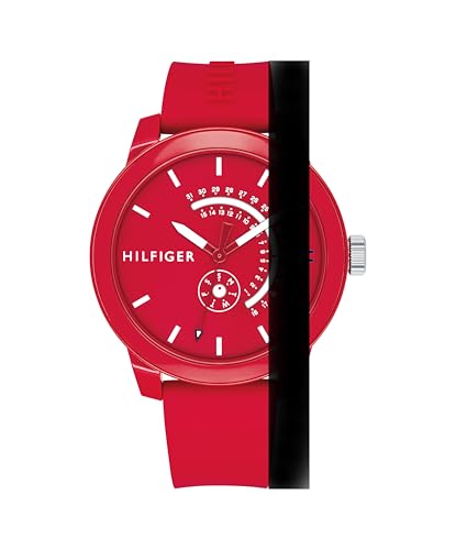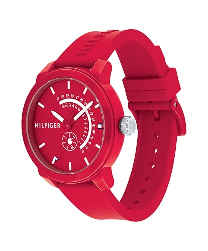 Tommy Hilfiger - ساعة يد كوارتز للرجال بسوار سيليكون احمر من تومي هيلفجر 19.7 - موديل: 1791480 لون حركة